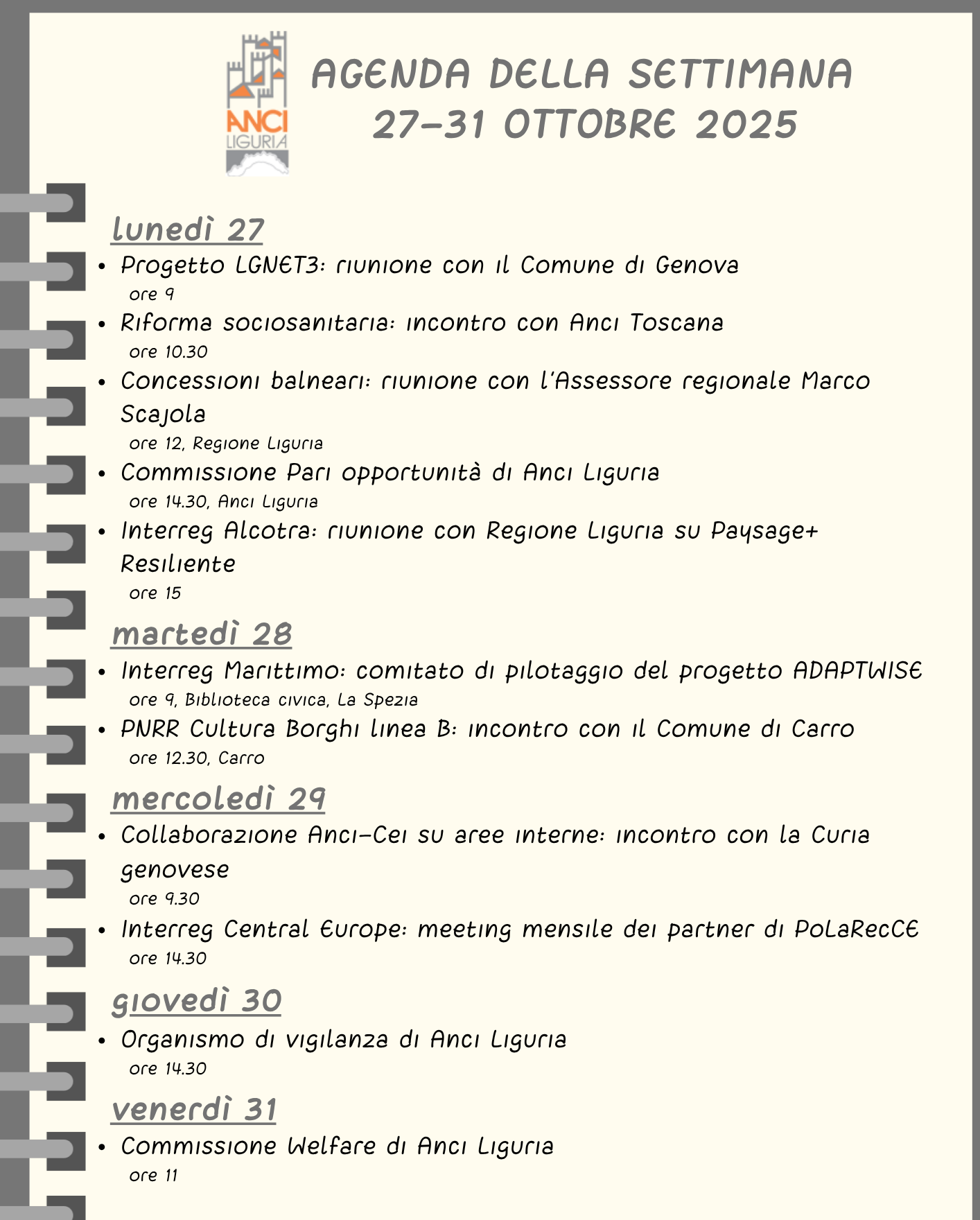 Agenda Anci Liguria della settimana 27-31 ottobre