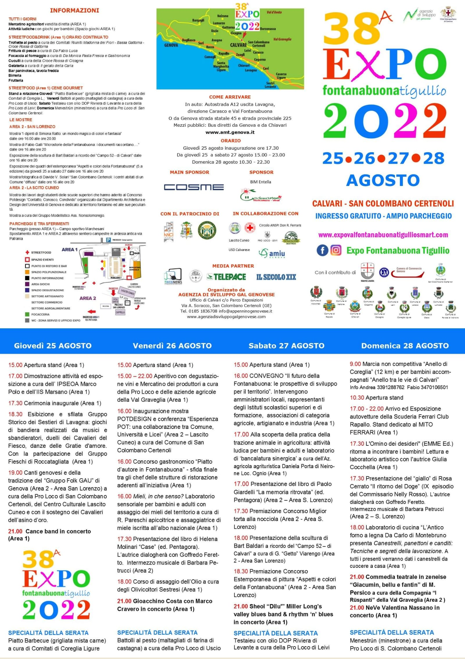 Anche quest'anno Anci Liguria ha concesso il patrocinio alla 38esima edizione dell’Expo della Fontanabuona, la manifestazione in programma da giovedì 25 a domenica 28 agosto presso la storica sede del Parco Esposizioni Fontanabuona di Calvari, nel Comune di San Colombano Certenoli. Un evento che anima la Val Fontanabuona con prodotti tipici ed eventi per scoprire il territorio.