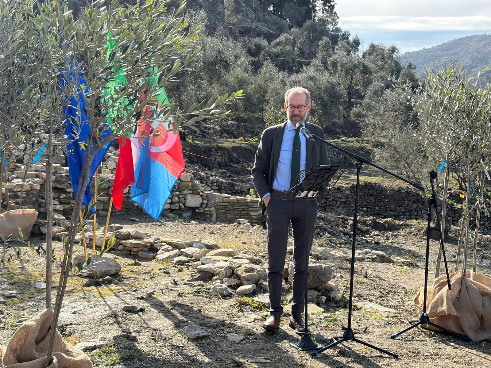 Sabato 7 febbraio è stato inaugurato l’Oliveto di Borgo Castello: percorso didattico di promozione della cultura olivicola che andrà a far parte dell’Azienda agricola esperenziale prevista dal grande progetto di rigenerazione urbana, economica e sociale “Ricordare il passato per costruire il futuro”. Il percorso di rigenerazione vede il coinvolgimento sinergico di numerosi enti e istituzioni: Regione Liguria che ha proposto il progetto al Ministero della Cultura che l’ha finanziato con i fondi europei PNRR del Bando Borghi linea A, Anci Liguria, Soprintendenza, Università di Genova, Camera di Commercio Riviere di Liguria, Fondazione Borgo Castello e Fondazione Cavallini Sgarbi.