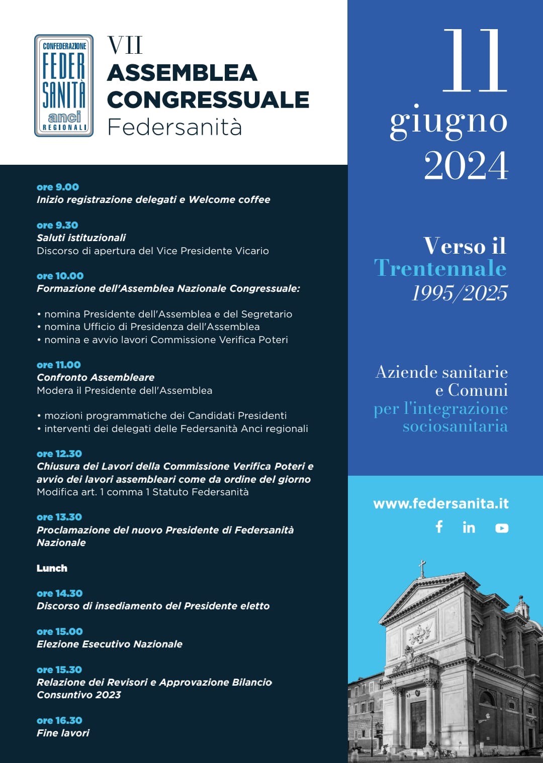 Martedì 11 giugno si terrà la VII Assemblea congressuale di Federsanità Anci per l’elezione del Presidente e della nuova governance.