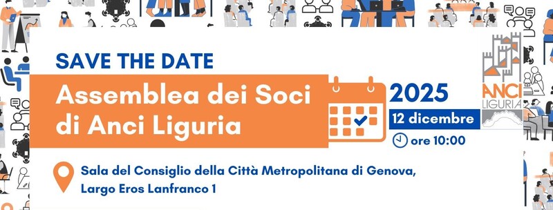 L’Assemblea dei soci di Anci Liguria si terrà venerdì 12 dicembre 2025 dalle ore 10 presso la sala del Consiglio della Città metropolitana di Genova.