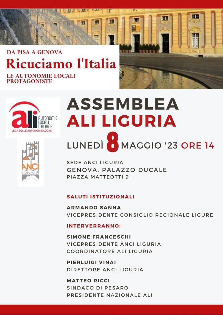 Si è tenuta oggi l'Assemblea regionale di ALI liguria "Da Pisa a Genova: Ricuciamo l'Italia. Le Autonomie locali protagoniste" (vedi il programma).