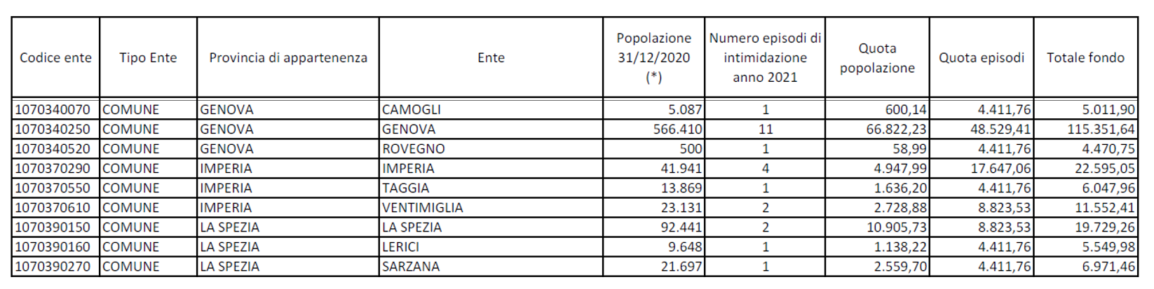 TABELLA COMUNI LIGURI BENEFICIARI.