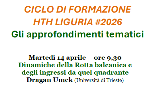 Martedì 14 aprile a partire dalle ore 9.30 si terrà il secondo incontro del percorso formativo previsto dal "Progetto HTH Liguria 6 - Hope this helps: Il Sistema Liguria contro la tratta e lo sfruttamento minorile" per approfondire diverse tematiche legate alla tratta e allo sfruttamento lavorativo.