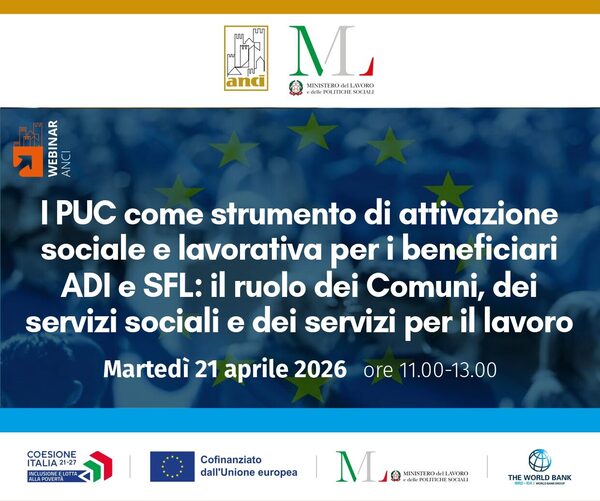 Focus dell'incontro, che vedrà la partecipazione della Direzione Generale per le politiche attive del lavoro del Ministero, saranno i Progetti Utili alla Collettività (PUC ), strumento fondamentale per l'attivazione sociale e lavorativa sia dei beneficiari dell'ADI che dei beneficiari del Supporto per la Formazione e il Lavoro (SFL). Il webinar è rivolto a Comuni, ATS e Centri per l'Impiego, con l'obiettivo di migliorare l’integrazione delle procedure e l’efficacia degli interventi sui territori.