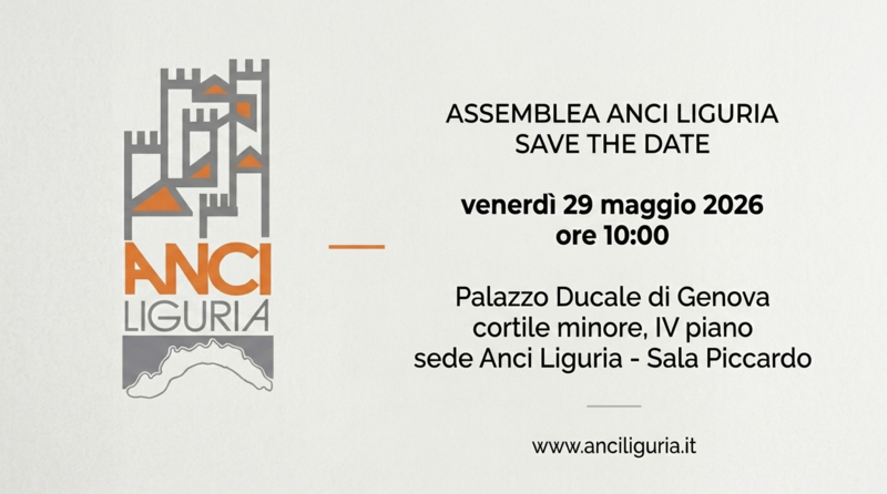 Si terrà venerdì 29 maggio 2026 a partire dalle ore 10 presso la Sala Piccardo di Anci Liguria (Palazzo Ducale di Genova, cortile minore, IV piano, Piazza Matteotti 9) l'Assemblea dei soci di Anci Liguria.