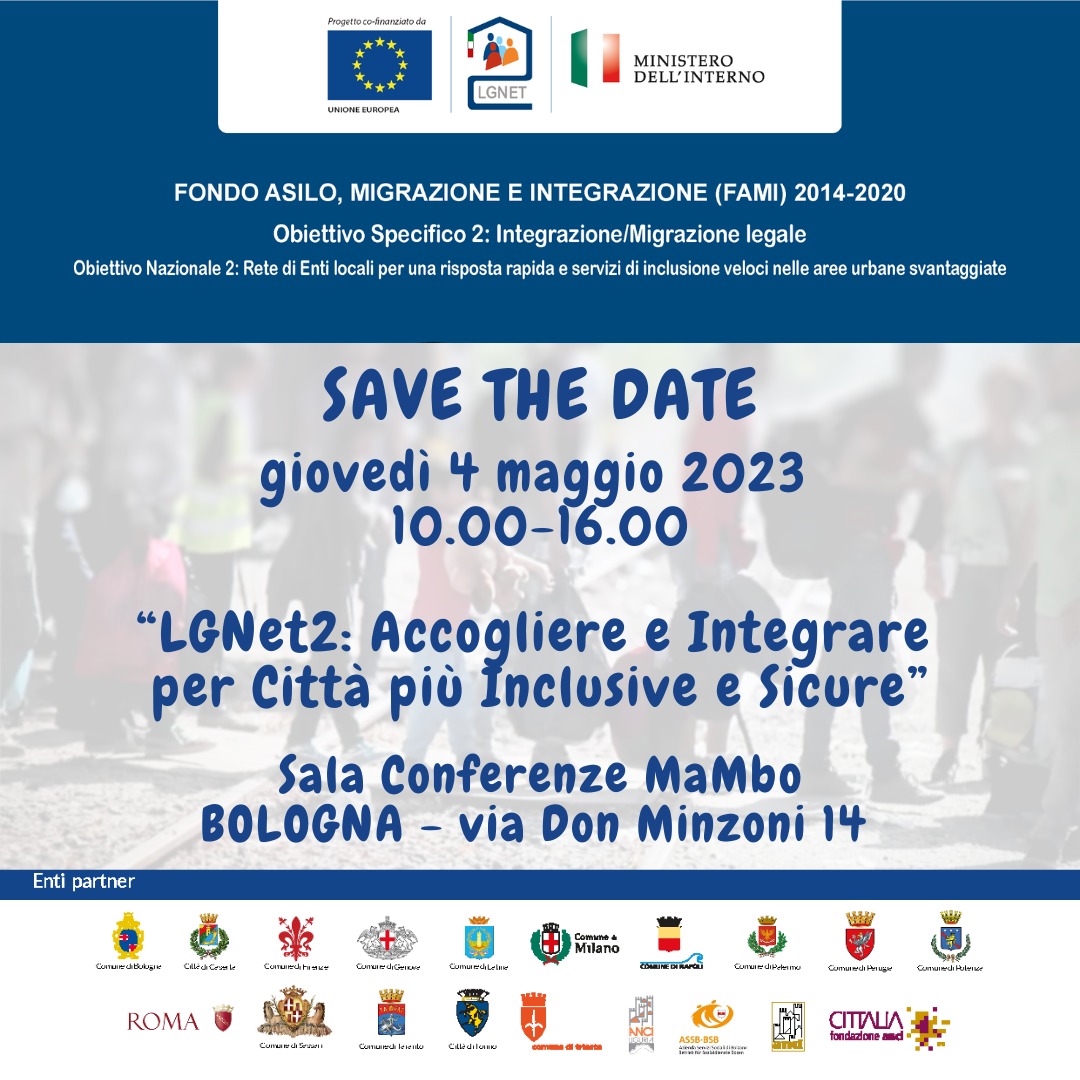 Giovedì 4 maggio presso la sala conferenze MAMbo - Museo d'Arte Moderna di Bologna si terrà l'evento di presentazione del progetto LGNET2 "Accogliere e integrare per città più inclusive e sicure".