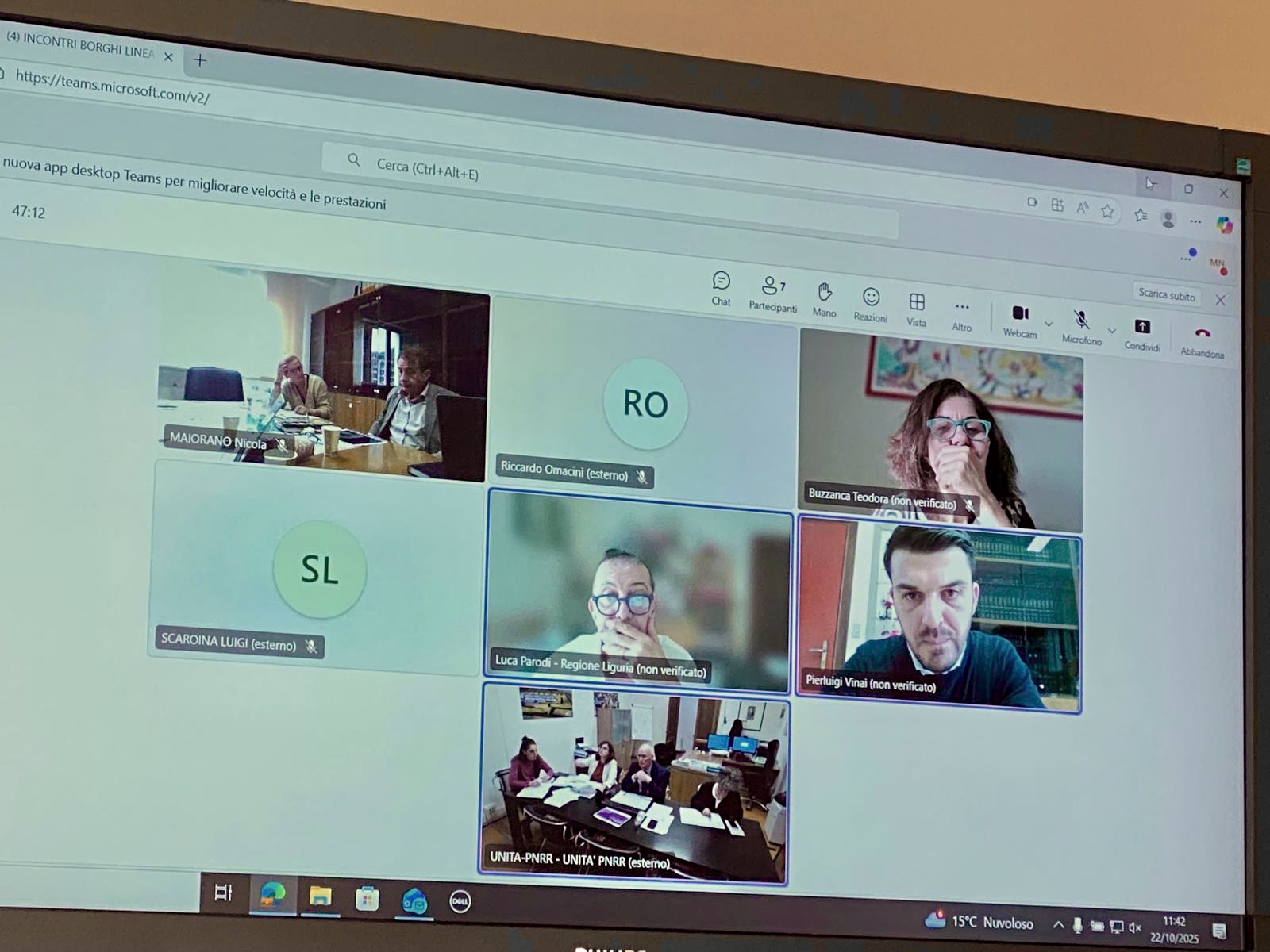 Successivamente, un incontro con l'Università di Genova, rappresentata dal Prorettore Fabrizio Benente, ha focalizzato l'attenzione sullo sviluppo delle azioni culturali e tecnologiche previste per il Borgo. È emersa l'urgenza di procedere speditamente con l'infrastrutturazione tecnologica e dei servizi di supporto (connettività, cavi, canalette) prima di affidare il lotto 1 dei lavori.