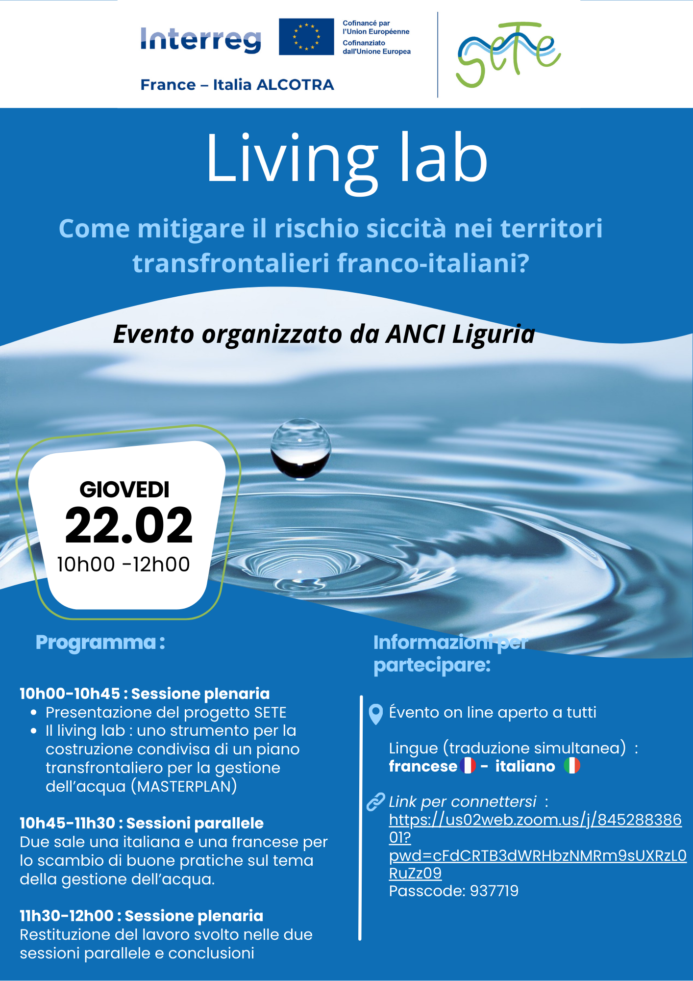 Il living lab ha l’obiettivo di raccogliere indicazioni e buone pratiche sul tema dell’acqua. L'evento è organizzato da Anci Liguria.