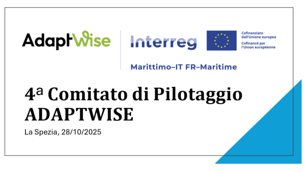 Si terrà martedì 28 ottobre 2025 a La Spezia, presso l'Auditorium della Biblioteca Civica "P.M. Beghi" (Via del Canaletto 100), la quarta riunione del Comitato di Pilotaggio (CdP) del progetto ADAPTWISE, finanziato dal programma Interreg Marittimo 2021-2027.