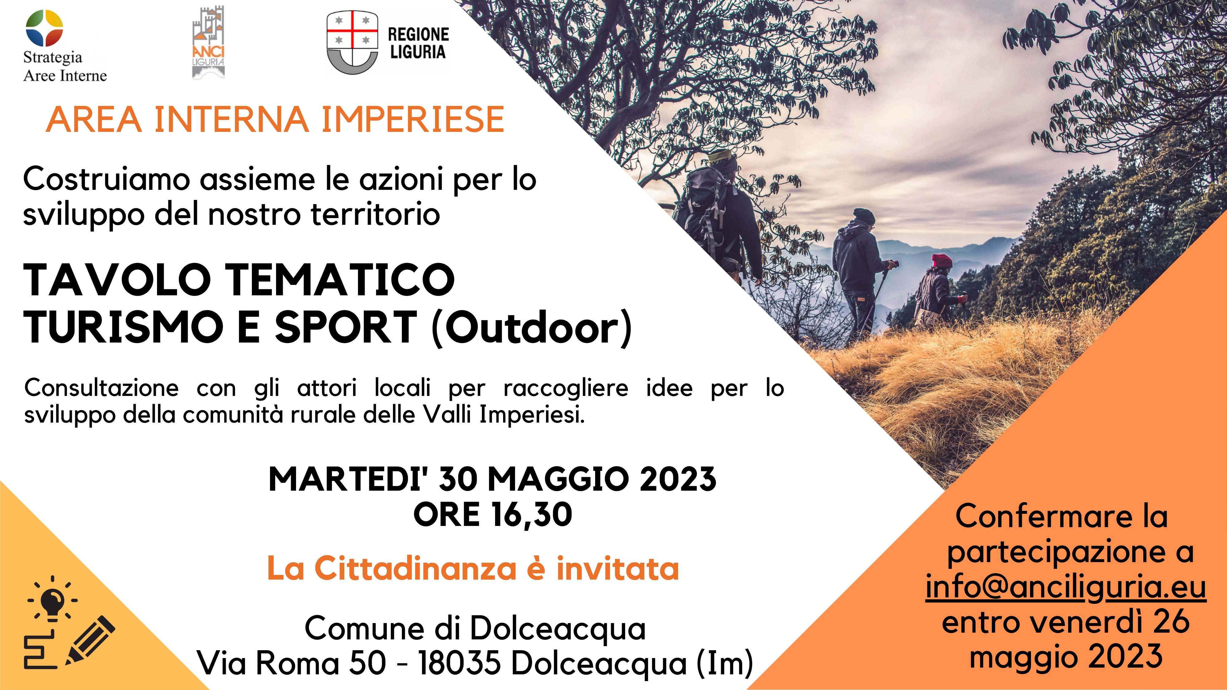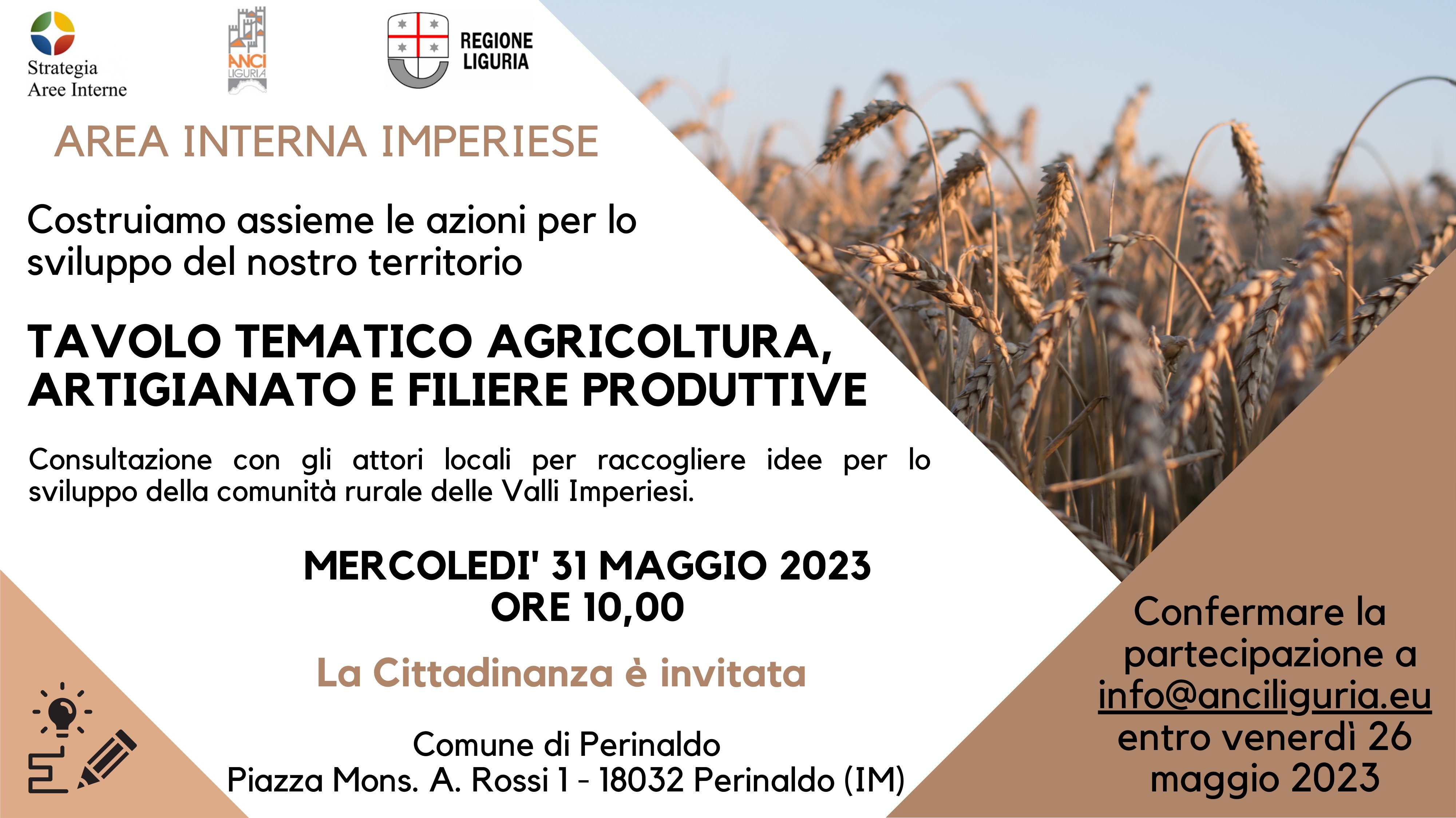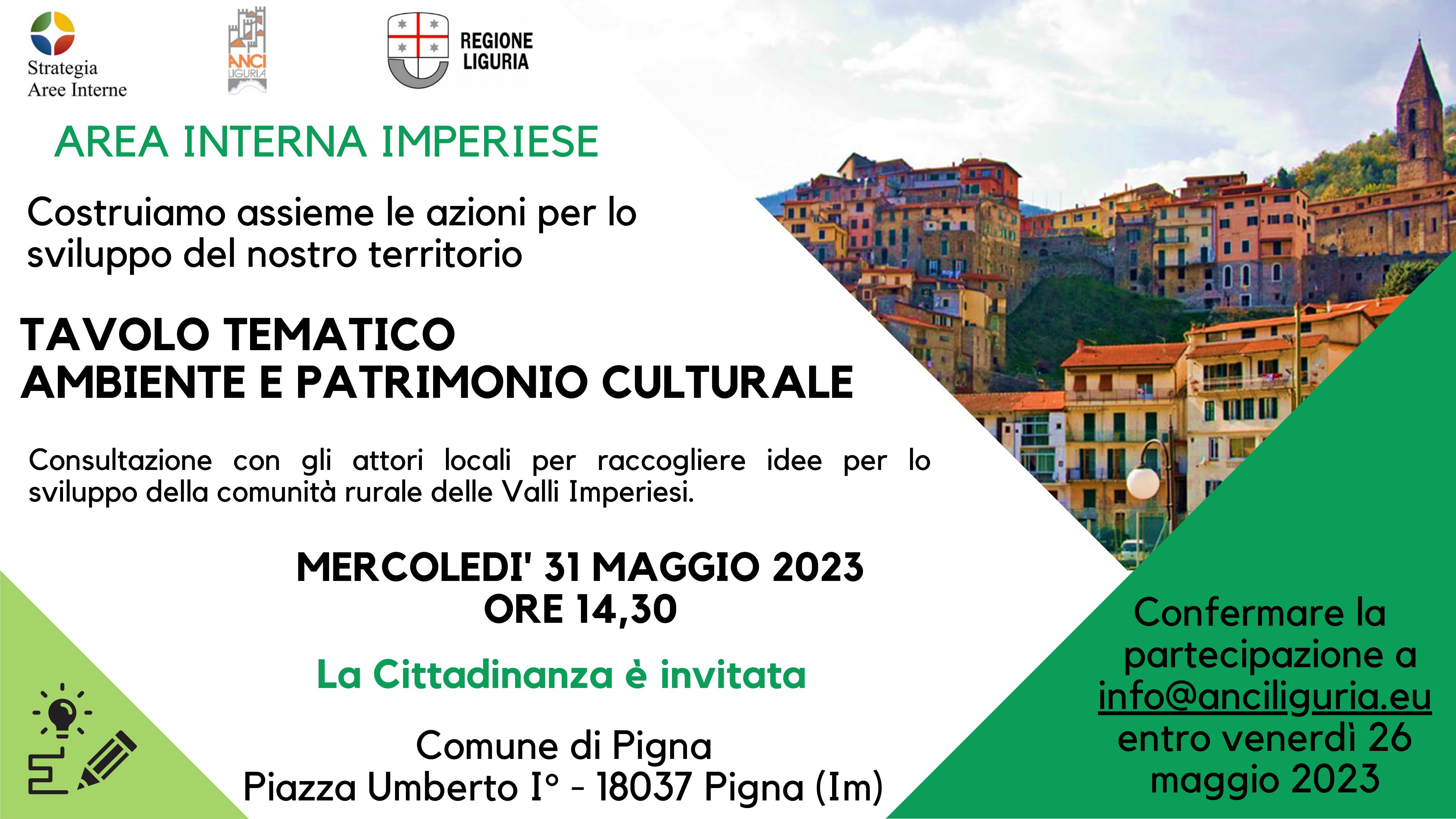 Per garantire un'organizzazione adeguata, vi preghiamo di confermare la partecipazione inviando un’e-mail a info@anciliguria.eu entro venerdì 26 maggio.