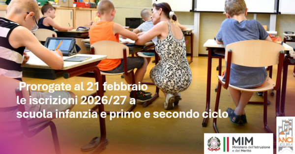 Con nota MIM 12 febbraio 2026 è stata disposta la proroga alle ore 20 di sabato 21 febbraio 2026 per effettuare le iscrizioni 2026/2027 alle scuole dell’infanzia e alle scuole del primo e secondo ciclo.