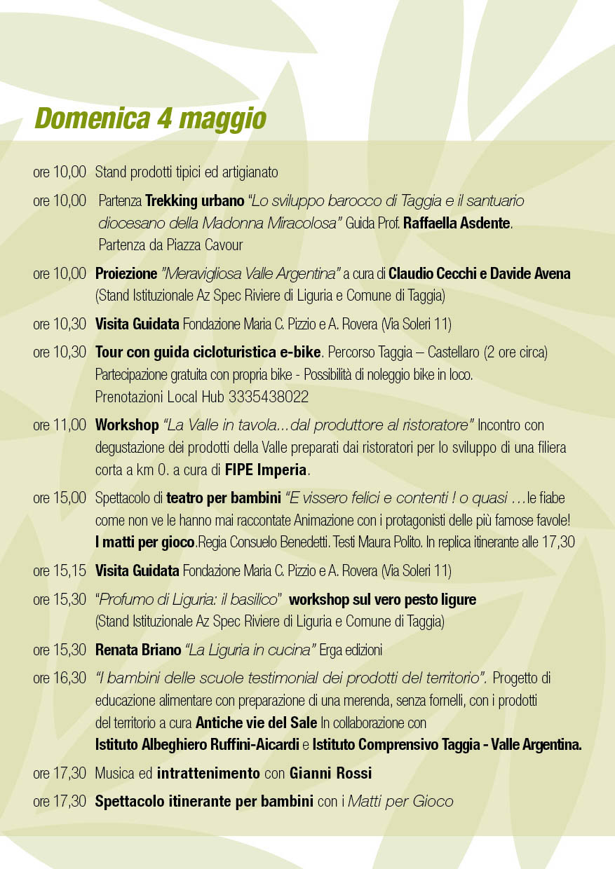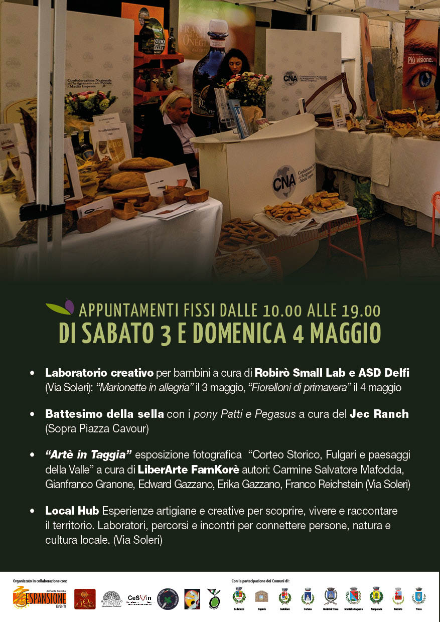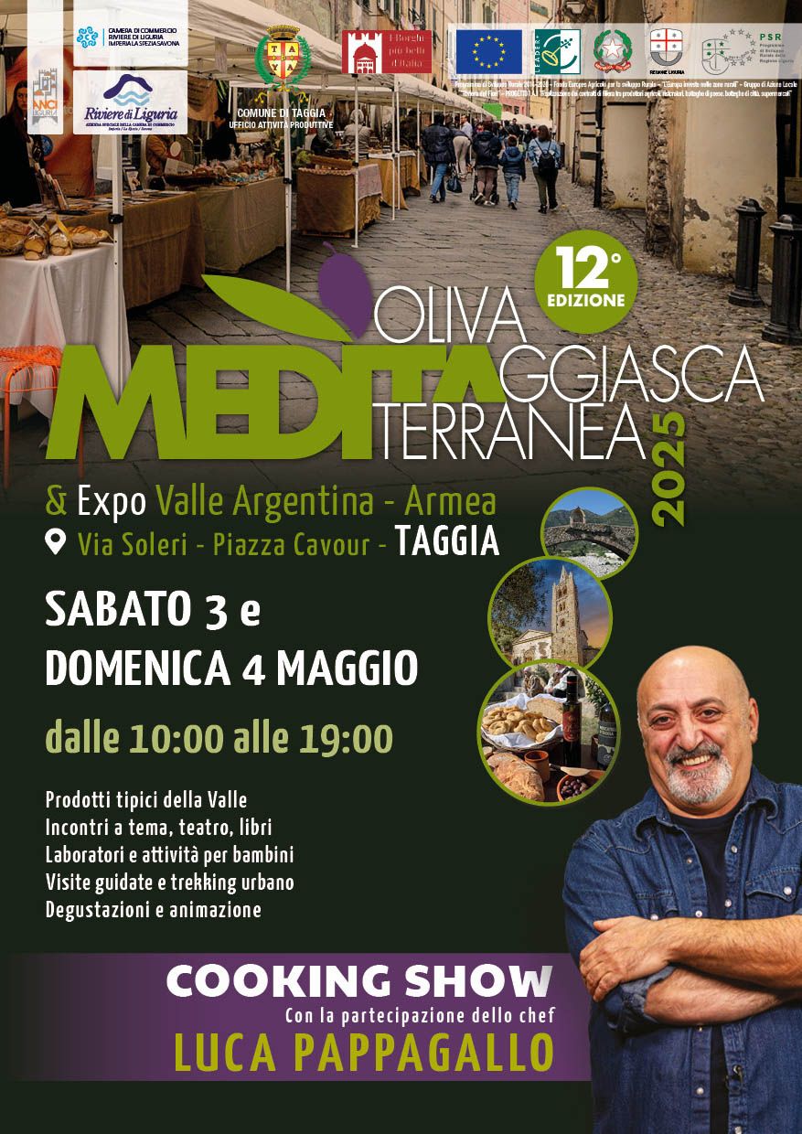 La manifestazione, organizzata dal Comune di Taggia in collaborazione con la Camera di Commercio Riviere di Liguria e l’Azienda Speciale della Camera di Commercio, ha il patrocinio di Regione Liguria e Anci Liguria.
