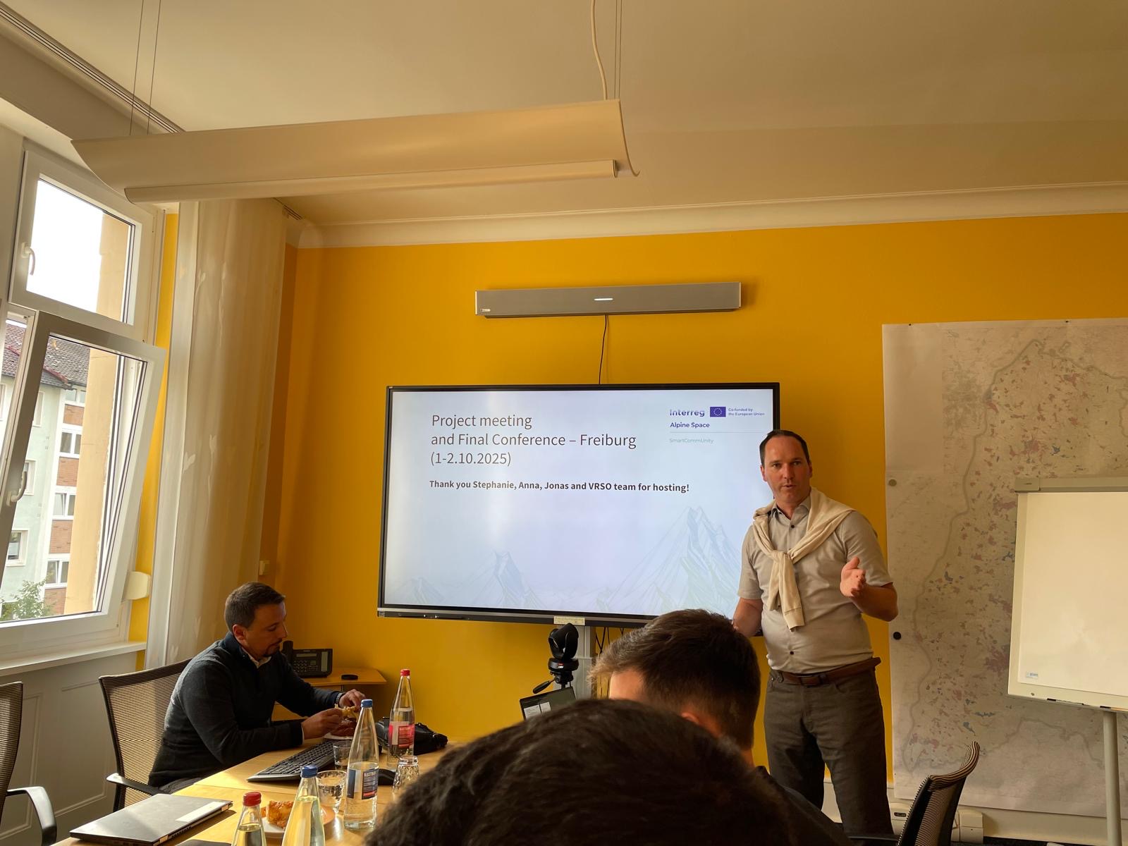 The final two-day meeting and final conference of the European SmartCommUnity project (Interreg Alpine Space) kicked off today in Freiburg, Germany. The event, hosted by VRSO - Verband Region Südlicher Oberrhein, brings together all the partners to outline the closure of the project and share the results obtained in the different pilot areas.