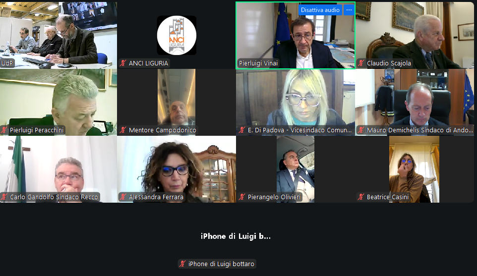 Presso la sala Di Capua di Anci Liguria e in videoconferenza si è riunito questa mattina l'Ufficio di Presidenza di Anci Liguria, presieduto da Pierluigi Peracchini e moderato dal Direttore generale Pierluigi Vinai.