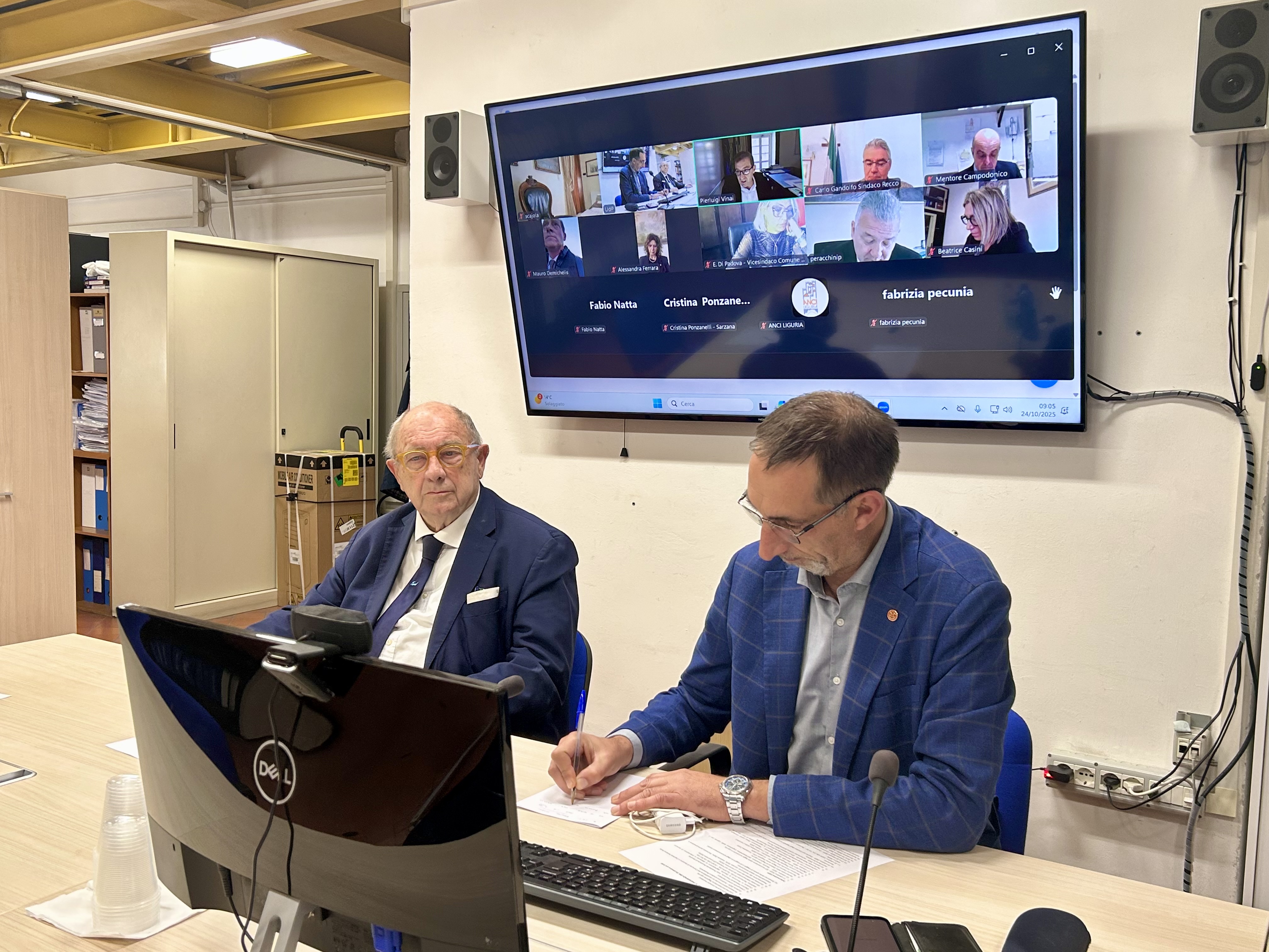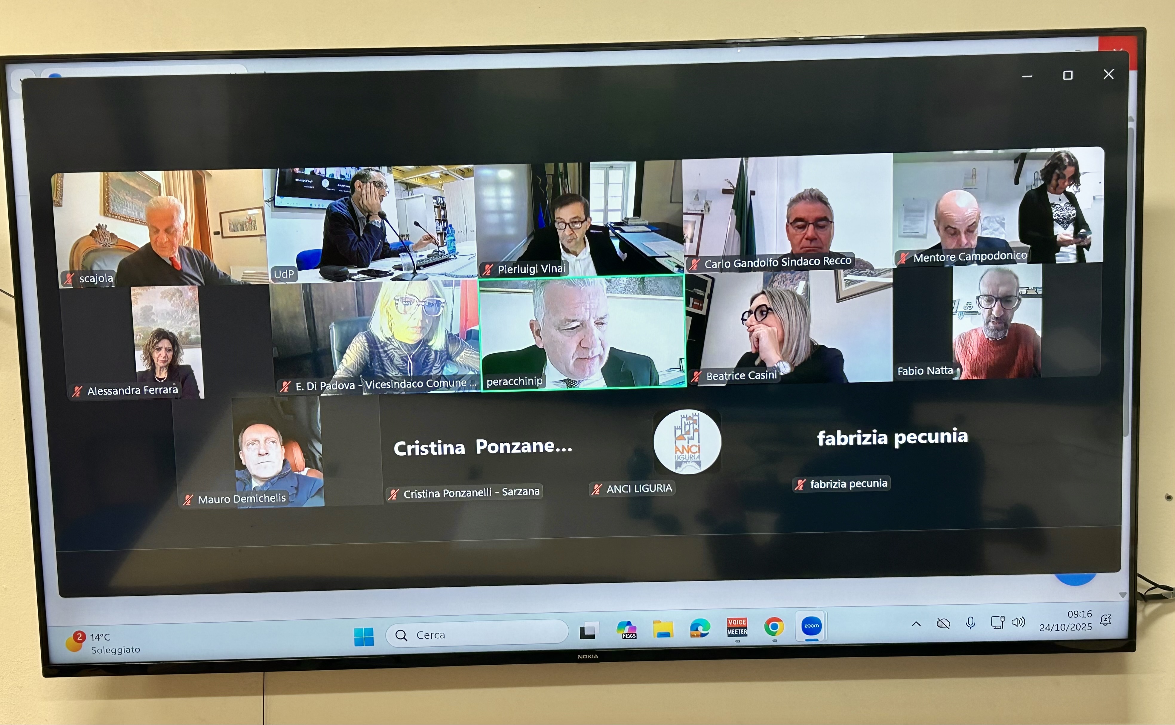 Presso la sala Di Capua di Anci Liguria e in videoconferenza si è riunito questa mattina l'Ufficio di Presidenza di Anci Liguria, presieduto da Pierluigi Peracchini e moderato dal Direttore generale Pierluigi Vinai.