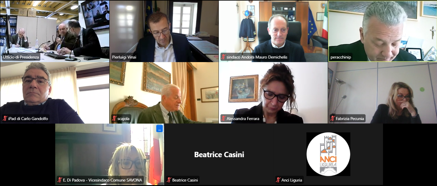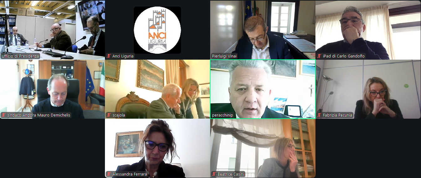 Presso la sala Di Capua di Anci Liguria e in videoconferenza si è riunito questa mattina l'Ufficio di Presidenza di Anci Liguria, presieduto da Pierluigi Peracchini e moderato dal Direttore generale Pierluigi Vinai.