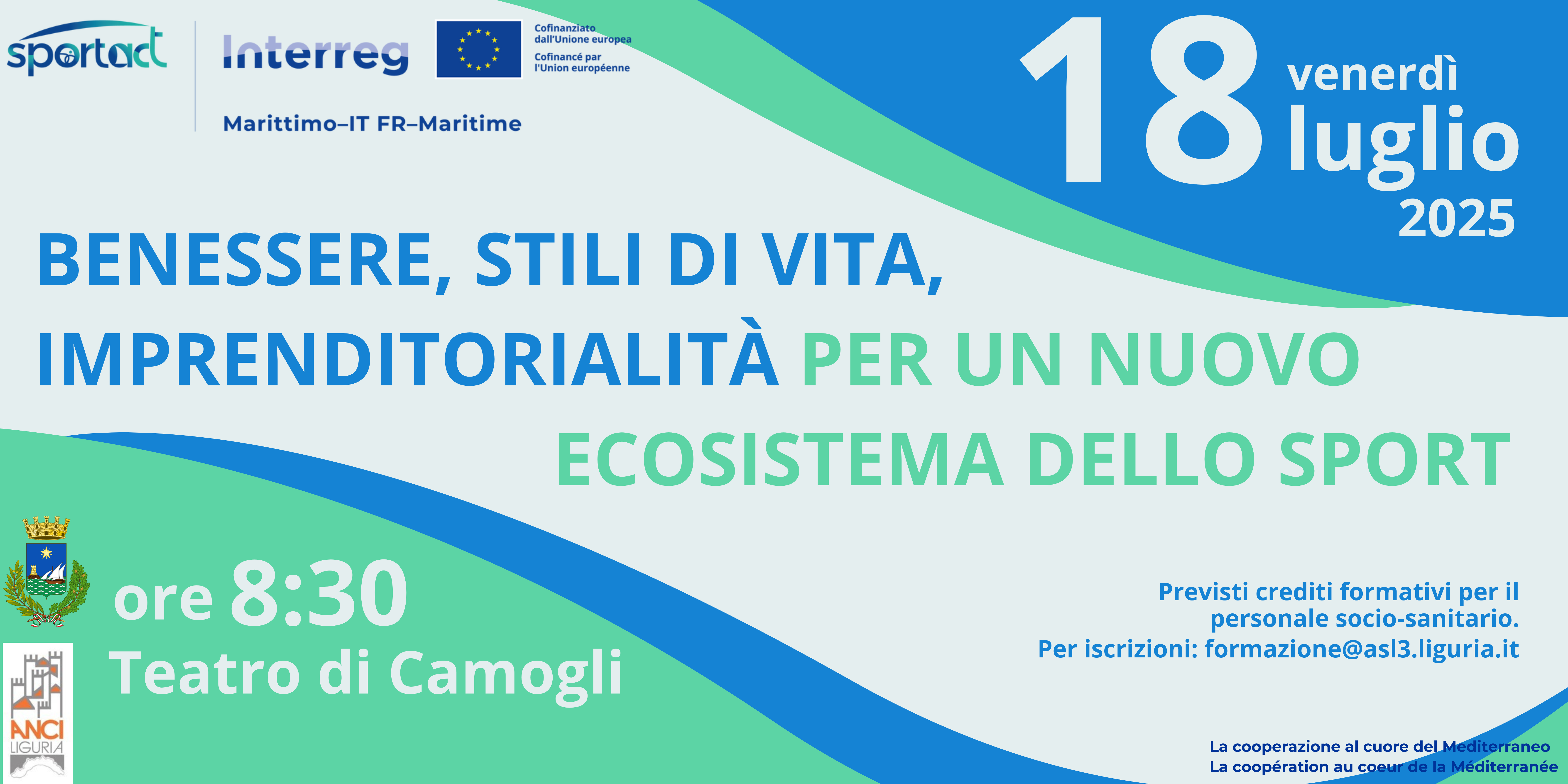 Venerdì 18 luglio a partire dalle ore 8:30 al Teatro sociale di Camogli (piazza G. Matteotti, 5) si svolgerà il convegno "Benessere, stili di vita, imprenditorialità per un nuovo ecosistema dello sport".